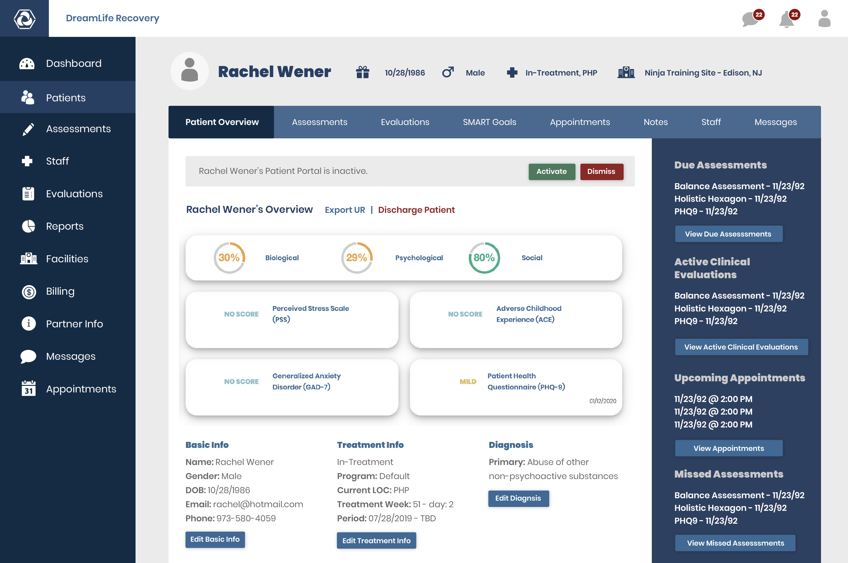 HUB is the main access point for providers and staff to review patient and assessment data, complete evaluations, generate reports, manage facilities and more.