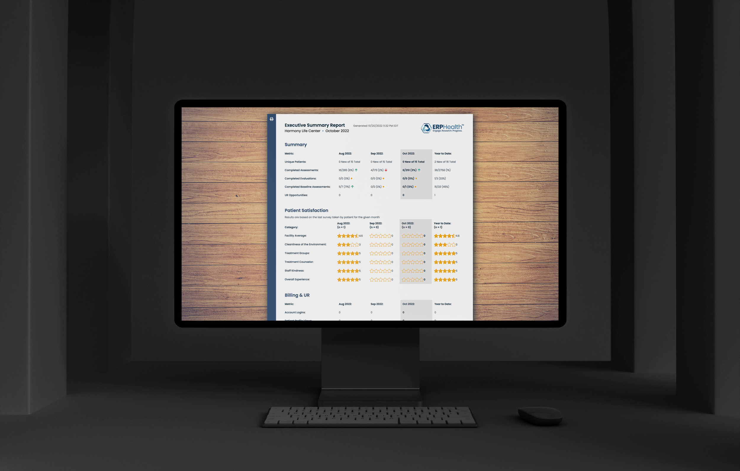 The Executive Report is one of the reports automated by HUB. It is a summary view of how the facility and its staff are doing month to month. The UI needed to accomodate a design that would be primarily used for print.