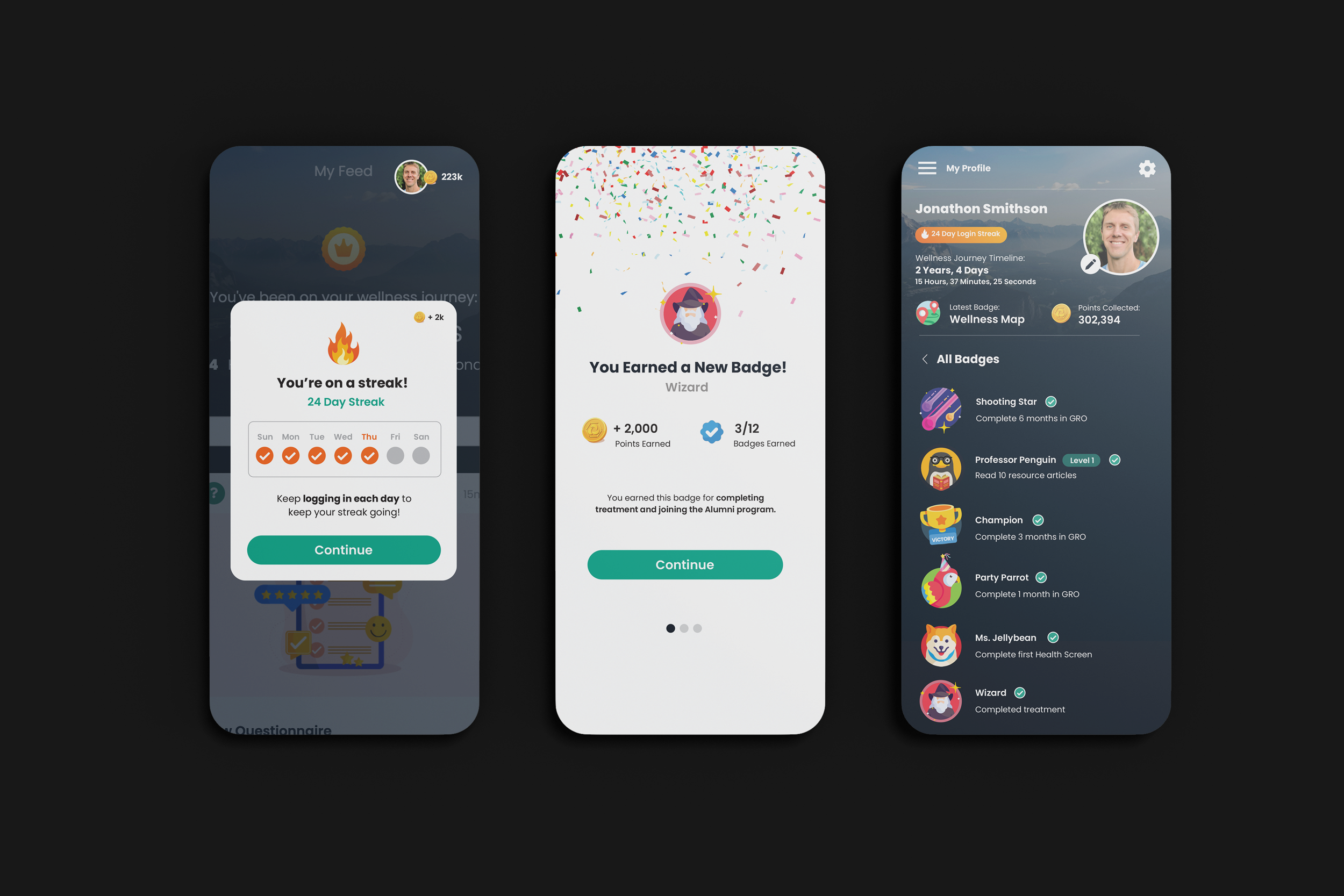 GRO is ERPHealth's alumni program and interface. It features a social feed that has custom posts from facilities as well as automated posts by ERPHealth. Once a patient is discharged into GRO, their Patient Portal interface switches to a GRO interface. The idea behind this design was to seamlessly transition from the Patient Portal into GRO, so patients recognize it. The key was striking the right balance of similiarities and differences so GRO felt familiar and understandable but also new and exciting.
